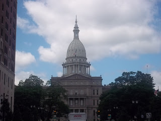 The governor signed legislation authorizing a license plate for the Boy Scouts, so I made the trip to Lansing to represent the council. I wasn't real eager to spend the time and money for the trip but felt someone should be there. As I walked up the steps in the capitol building, I ran into Eric and Adam Smith, a leader and his son from Marquette. They were in Lansing for Eric's older sons orientation at Michigan State. Adam would have been an excellent representative for the council and saved me the trip. Oh well, the getaway was good.